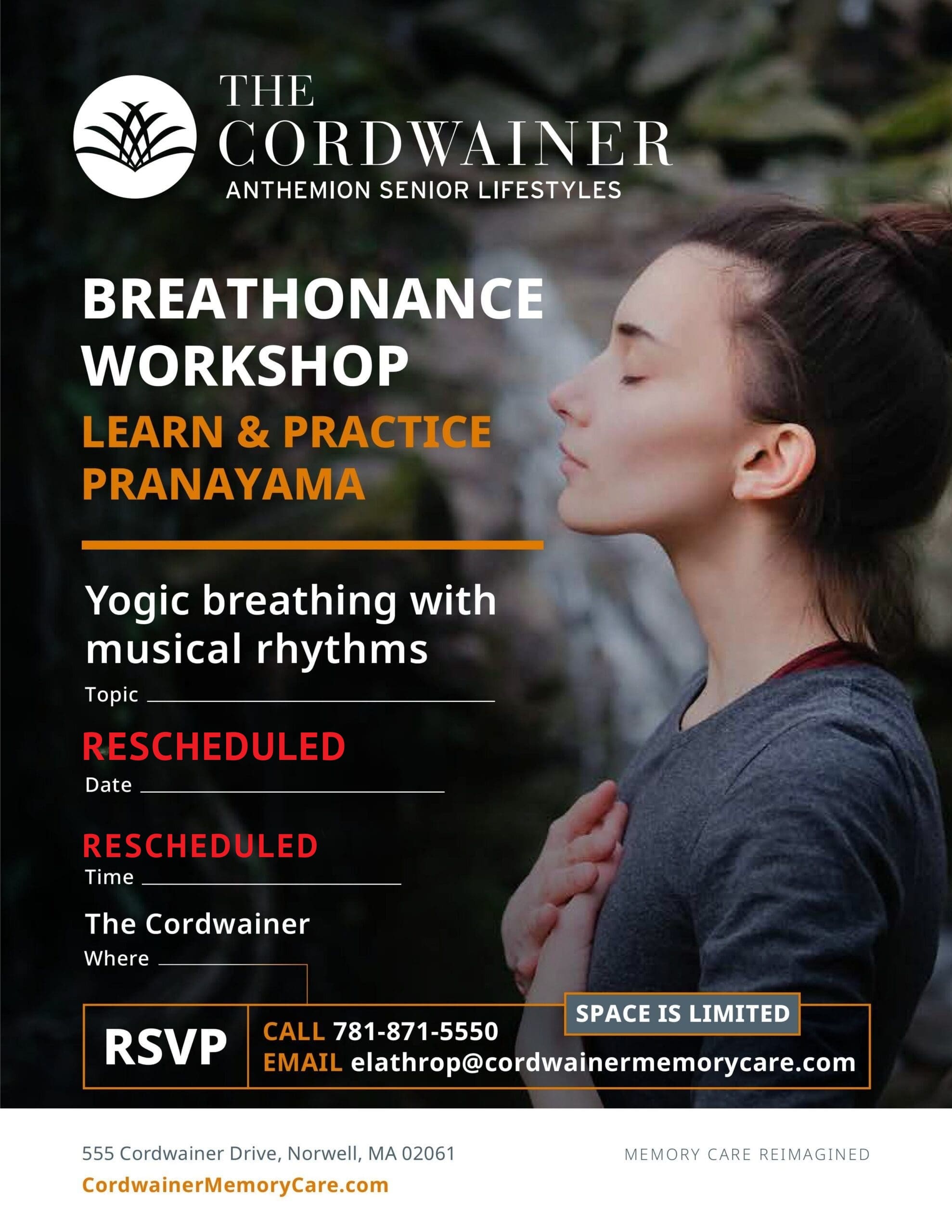 We are excited to host a Breathonance Workshop in Norwell, featuring the ancient practice of Pranayama. This session is designed to help you connect with your breath and find inner balance through a guided experience of yogic breathing set to musical rhythms.